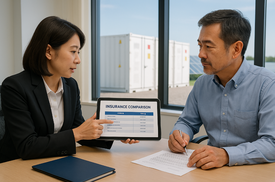 高額な系統用蓄電池ビジネスでは、リスク低減策(モニタリング・保守)+保険による金銭補償が車の両輪です。当サイトでは主要社の条件を一括比較し、事業規模・予算に合わせ最善のプランをご提案します。